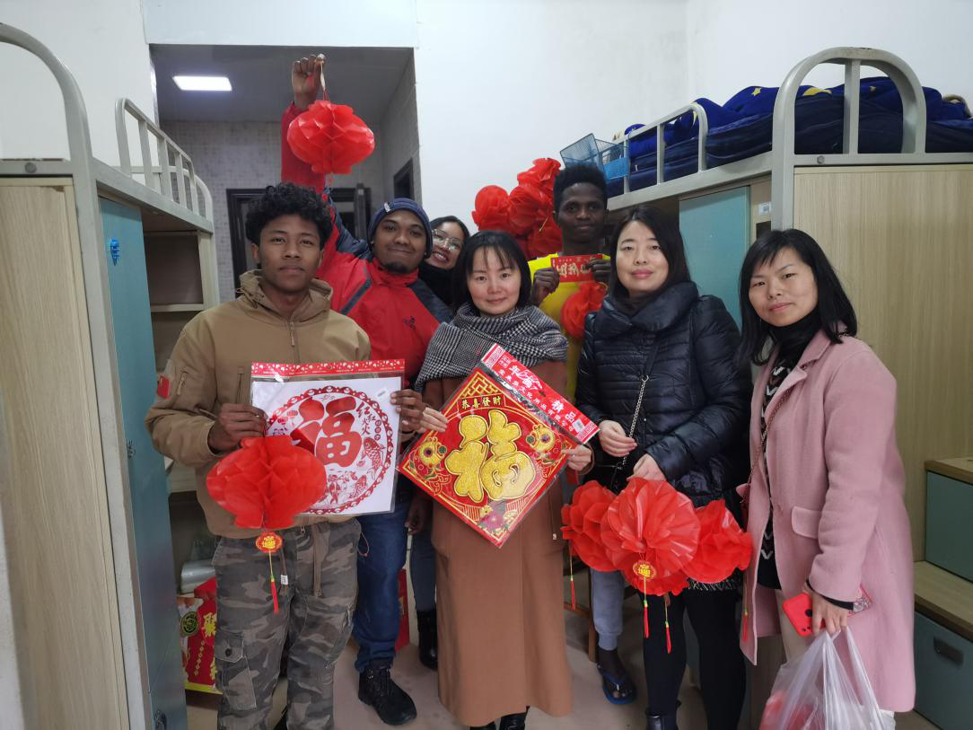 2月7日,学院党委书记廖承红、副院长金莲到留学生宿舍,看望慰问春节期间在校的硕士留学生,为他们送上新春的祝福。学科建设管理科张月娥老师和黄慧琼老师陪同。