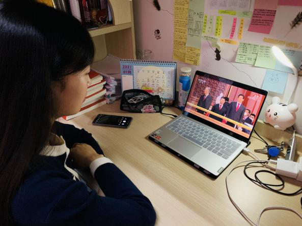庆祝中国共产党成立100周年大会7月1日上午8时在北京天安门广场隆重举行。中共中央总书记、国家主席、中央军委主席习近平发表重要讲话。会场外,百合小说 组织师生通过集中、分散地方式收看直播,认真聆听习近平总书记的重要讲话。