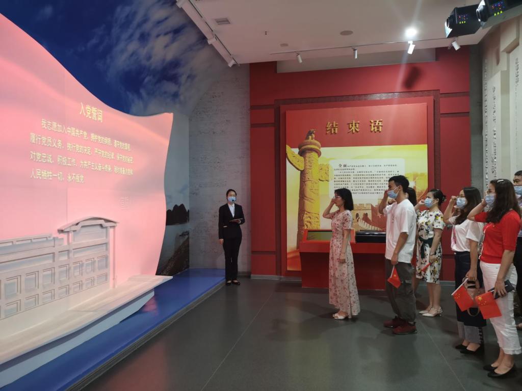 教育基地主展厅分为三部分,一是新时代的领路人;二是全面从严治党向纵深发展;三是构筑坚固不破的监督屏障,分别从政治建设、思想建设、组织建设、作风建设、纪律建设和制度建设六个方面展示新时代全面从严治党的相关内容。在讲解员的带领下,大家通过回顾党的历史,学习观看“全面从严治党永远在路上”、“贵州作风建设”等多个教育片;通过反面典型案例墙,“蜕变”警示教育片,警醒警示大家不忘初心,坚守底线,廉洁奉公。在尾厅,党委书记廖承红带领全体党员重温入党誓词,再次对党庄重承诺牢记誓词,对党忠诚。