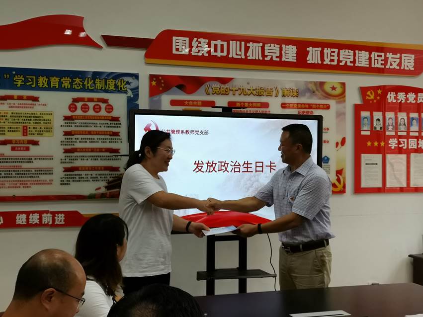 再接着,杨勇为上半年入党的21名党员发放了政治生日卡,并向所有党员表示祝贺,希望他们牢记入党誓词,践行诺言,做合格党员。