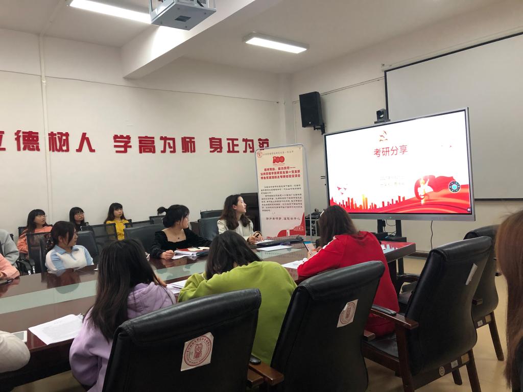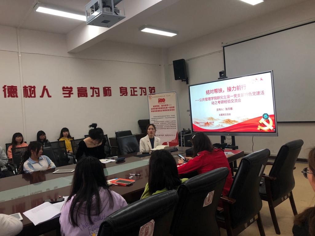 结对帮扶,接力前行!为切实解决本科生升学率低、考研难的问题,2021年5月21日早上,研究生第一党支部于正德楼201会议室举行特色党建活动,为百合小说 2018级本科生开展考研经验交流会。本次交流会由支部书记张月娥同志主持,特邀考研成功高分学子做经验分享,副院长曾宇航同志出席本次活动并做指导发言,支部全体党员及学院2018级备考本科生参与。