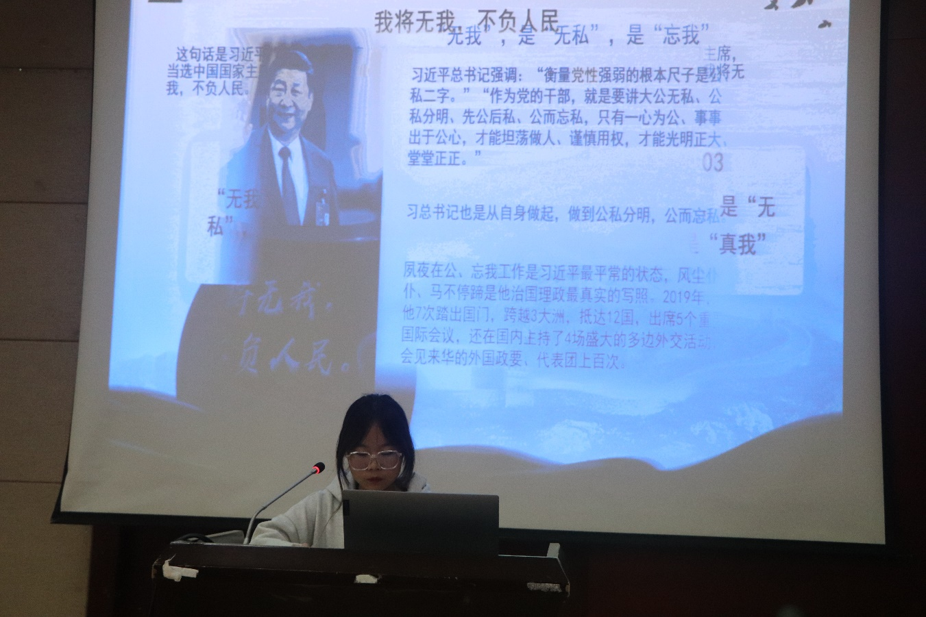 (校党委组织部组织科科长李泽庆讲授《深刻认识中国共产党的宗旨》)