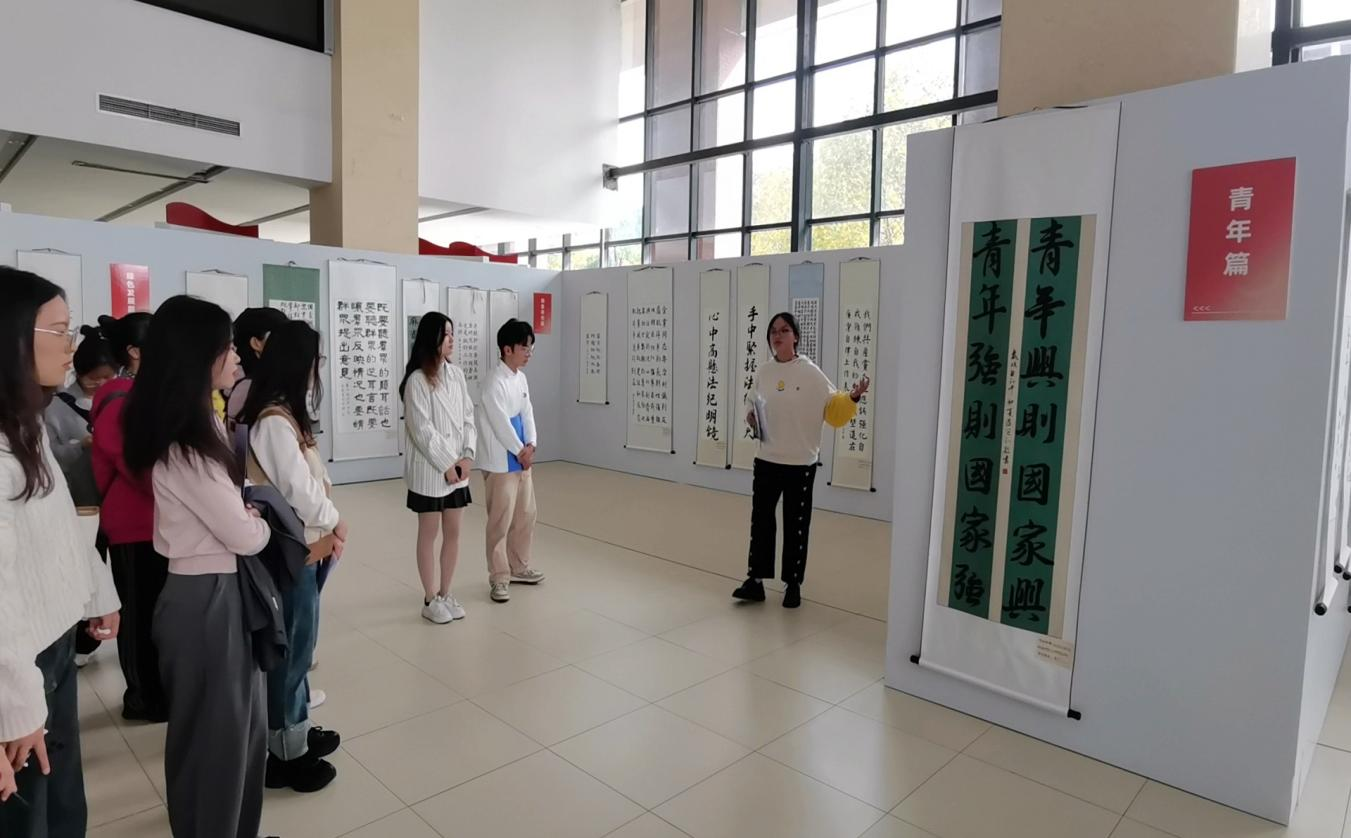 10月31日,在正德楼一楼大厅进行了“学习语金句,讲红色故事”主题实践教育活动。学员们组成6个小组,围绕《礼赞二十大 奋进新征程》主题教育书法展中关于习近平总书记的语录的书法作品进行延伸讲解。小组代表们慷慨激昂,深情叙述,用真挚表达和热烈情绪表达了学习习近平总书记的语录后的心得感悟。活动由7个学生党支部的党员代表组成了评委组就现场展示情况进行了打分,最终,第5组获得第一名。