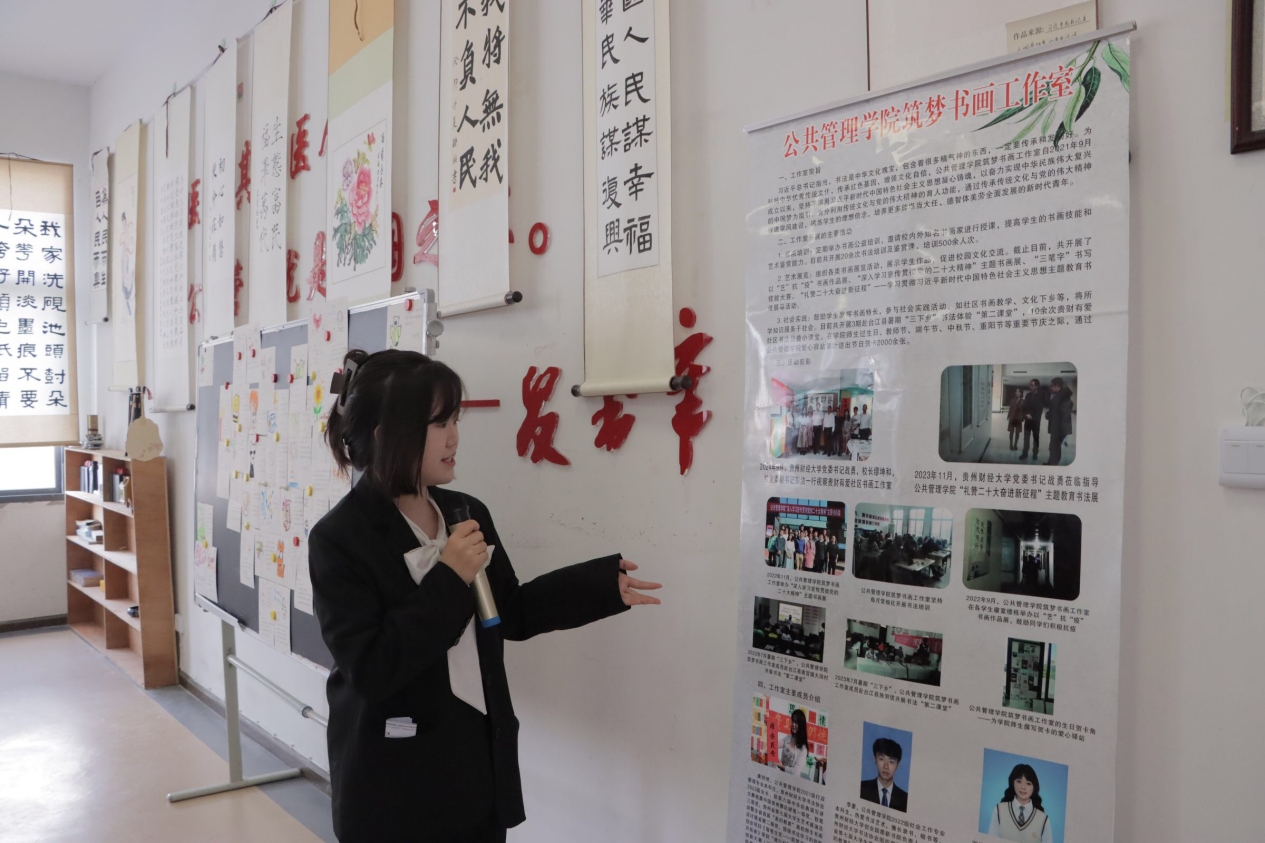最后,廖承红带领师生党员代表参观了学院的党建文化长廊和筑梦书画工作室,为大家上了一堂生动的校史、院史课。