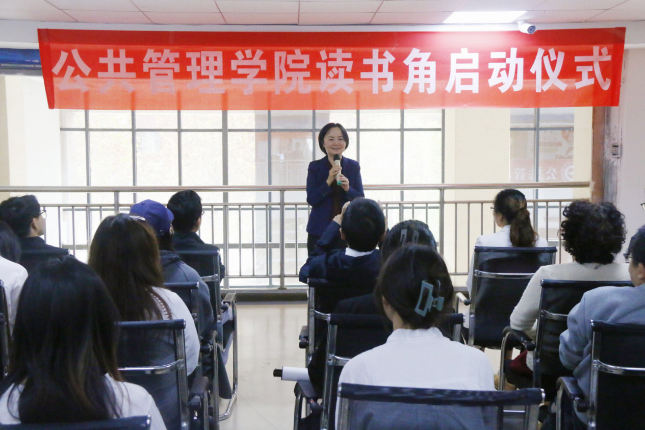 首先,廖承红为活动致辞,她指出,设立“读书角”是学院党委扎实推进“我为师生办实事”,提升师生“归属感”的重要举措,通过为师生创造一个学习交流和思想碰撞的空间,鼓励公管师生加强理论学习,让“阅读”成为一种习惯,让“悦读”成为一种态度,让“越读”成为一种坚持。