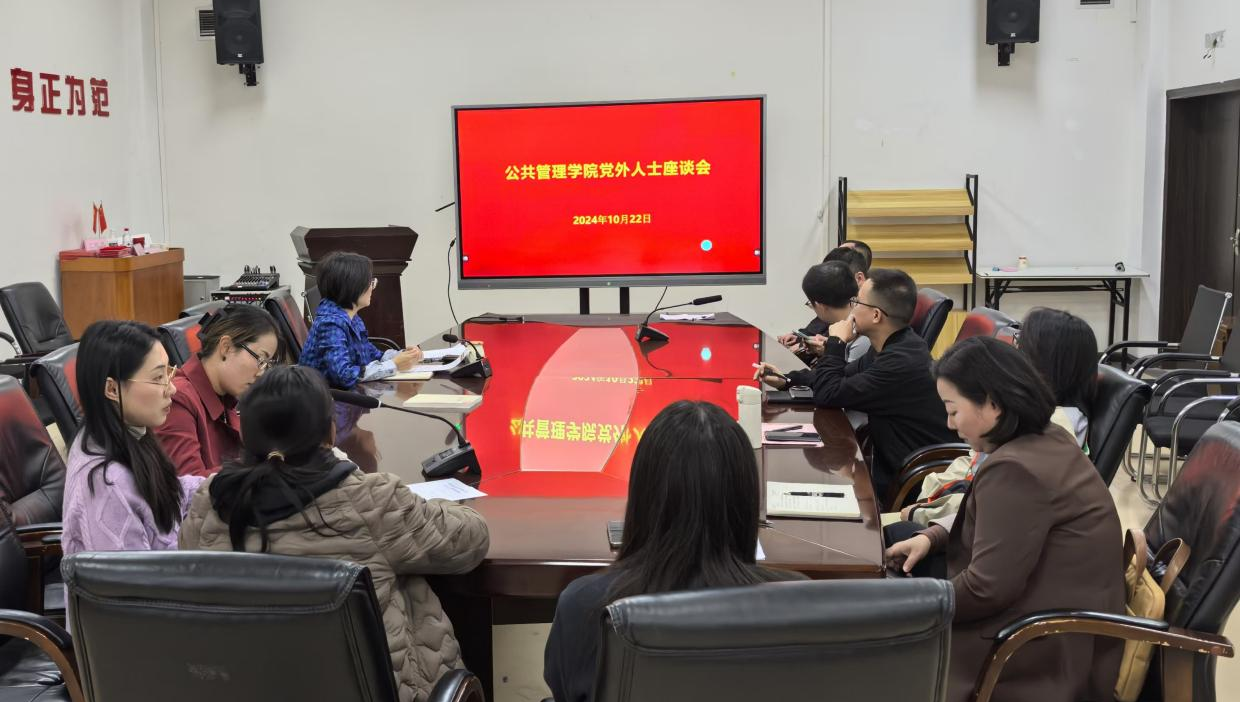 本网讯:(院党委办公室 邢溦 图文报道)2024年10月22日(星期二)下午15:30,学院党委在正德楼201会议室召开了党外人士座谈会。会议由学院党委书记廖承红主持,学院党外人士代表杨睿、李俊杰、刘应娟、李月、史军、姜丽、安天戟、姚尧、李丹青、王畅参会。