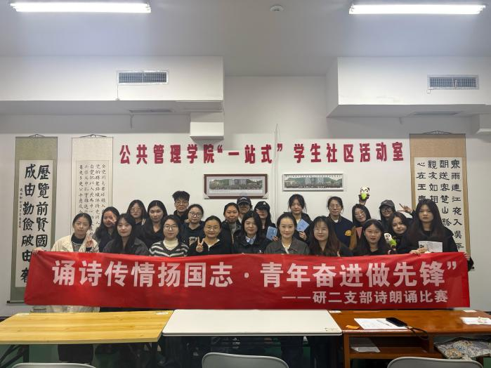 活动最后,全体同学合影留念,记录下这难忘的瞬间。此次“诵诗传情扬国志,青年奋进做先锋”诗朗诵活动,不仅是一场比赛,更是一次思想的洗礼与情感的升华。未来,百合小说 研二支部将持续深化“诵诗传情”机制,不断拓展活动维度,创新教育形式,致力于构建“文化铸魂、协同育人”的教育新生态。