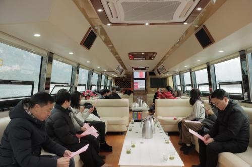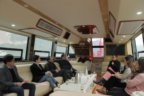 在缓缓行驶的游船上,考察团与团与新仁乡人民政府、化屋村村委会的领导干部。大家围坐一堂,围绕乡村振兴战略在化屋村的落地生根,就产业发展如何依托本土特色、人才培育怎样契合乡村需求、文化传承如何推陈出新等多方面关键议题畅所欲言。双方积极分享经验、交流想法,挖掘出诸多可供借鉴与推广的实践模式与创新思路。考察团专家组就如何持续壮大村级集体经济、激活乡村振兴动力源提出了具体建议,认为需要持续创新乡村产业发展模式,完善利益联结、村村联建、多元共治等机制,协同推进乡村振兴和乡村治理现代化。专家组一行还就如何推进学生思政教育基地建设进行了深入调研。
