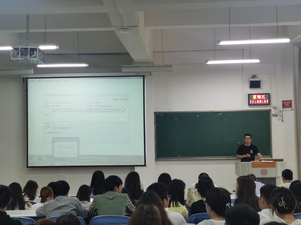 石飞老师介绍了专业实习各个环节应该注意的事项,并对实习周记、实习报告的撰写,实习鉴定表填写、实习单位盖章、格式规范等细节逐一作了讲解。