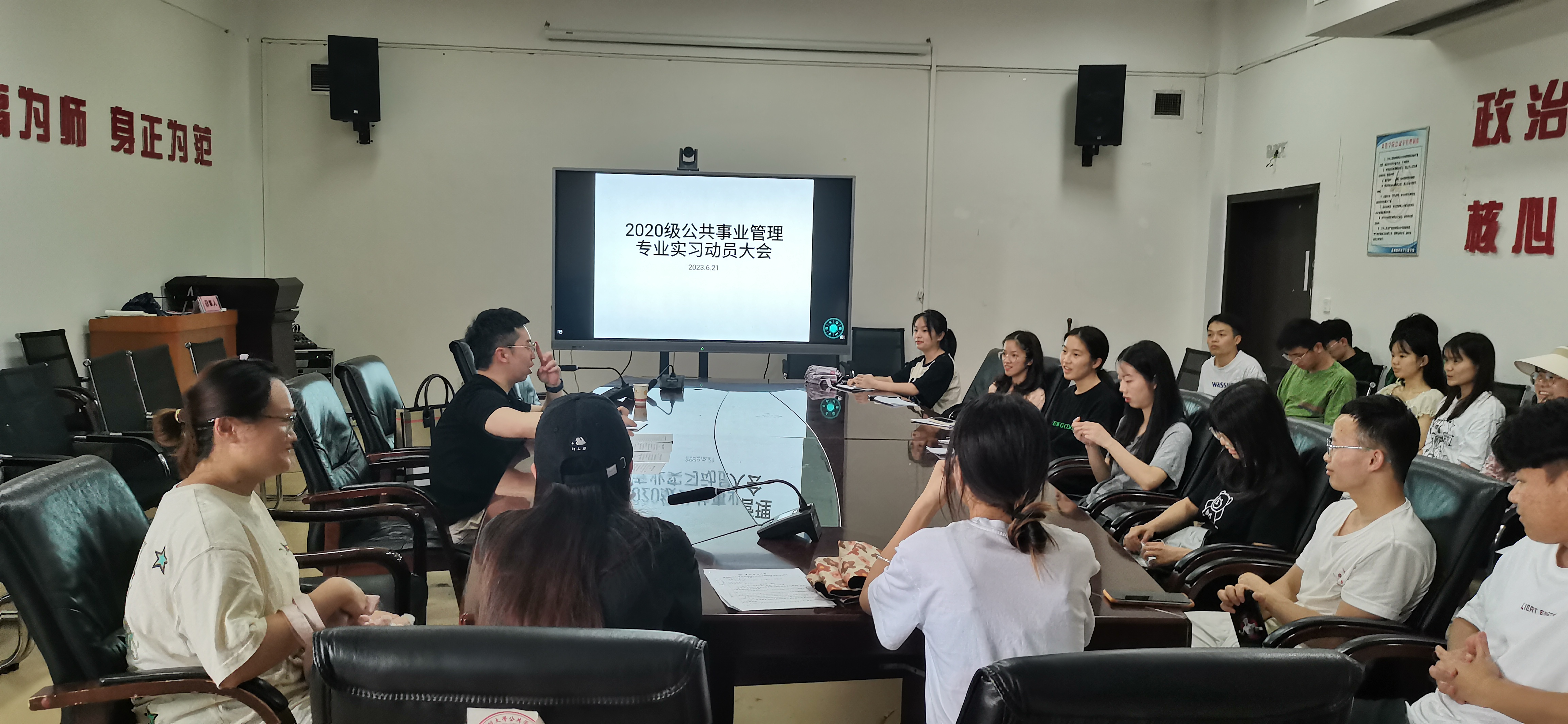 为更好帮助同学们适应实习工作,确保学生实习安全。2023年6月21日在正德楼201室,由城市管理教研室主任张超主持召开了2020级公共事业管理专业实习宣讲会,行管系教师代表和2020级公共事业管理班全体同学参与。