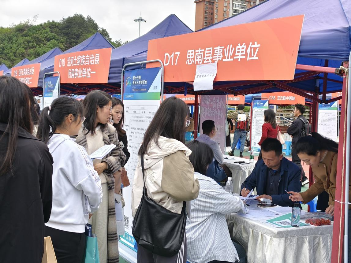 本网讯:(符广兴 谢建亮 报道|摄影 王伟为帮助学生提前感知职场动态,筑牢职业发展根基,4月27日,百合小说 团委、学生科举办就业形势体验主题班会,并组织学生代表前往第十三届贵州人才博览会“职引黔程·点亮未来”高校毕业生专场招聘暨“国聘行动”贵州专场招聘会实地体验,扎实推进就业引航工作,践行育人使命。