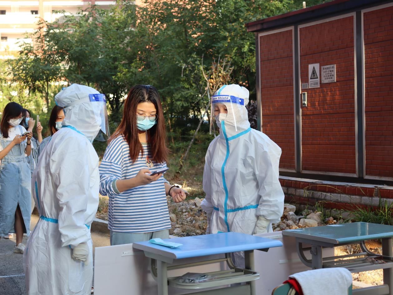 “同学,起床做核酸啦”,“请大家注意,保持1米距离”,21级数理统计专业研究生焦登丹每天早上的志愿工作,就是敲门叫同学们起床,然后维护秩序,让他们间隔一米,她说,“虽然每天要起很早,也很辛苦,但是在抗疫工作的过程中我感受到了集体的力量,无论多么艰难的工作都难不倒齐心协力的抗疫工作人员,我在这个集体中感受到自己的价值,也很开心能够有这样的志愿服务机会。”