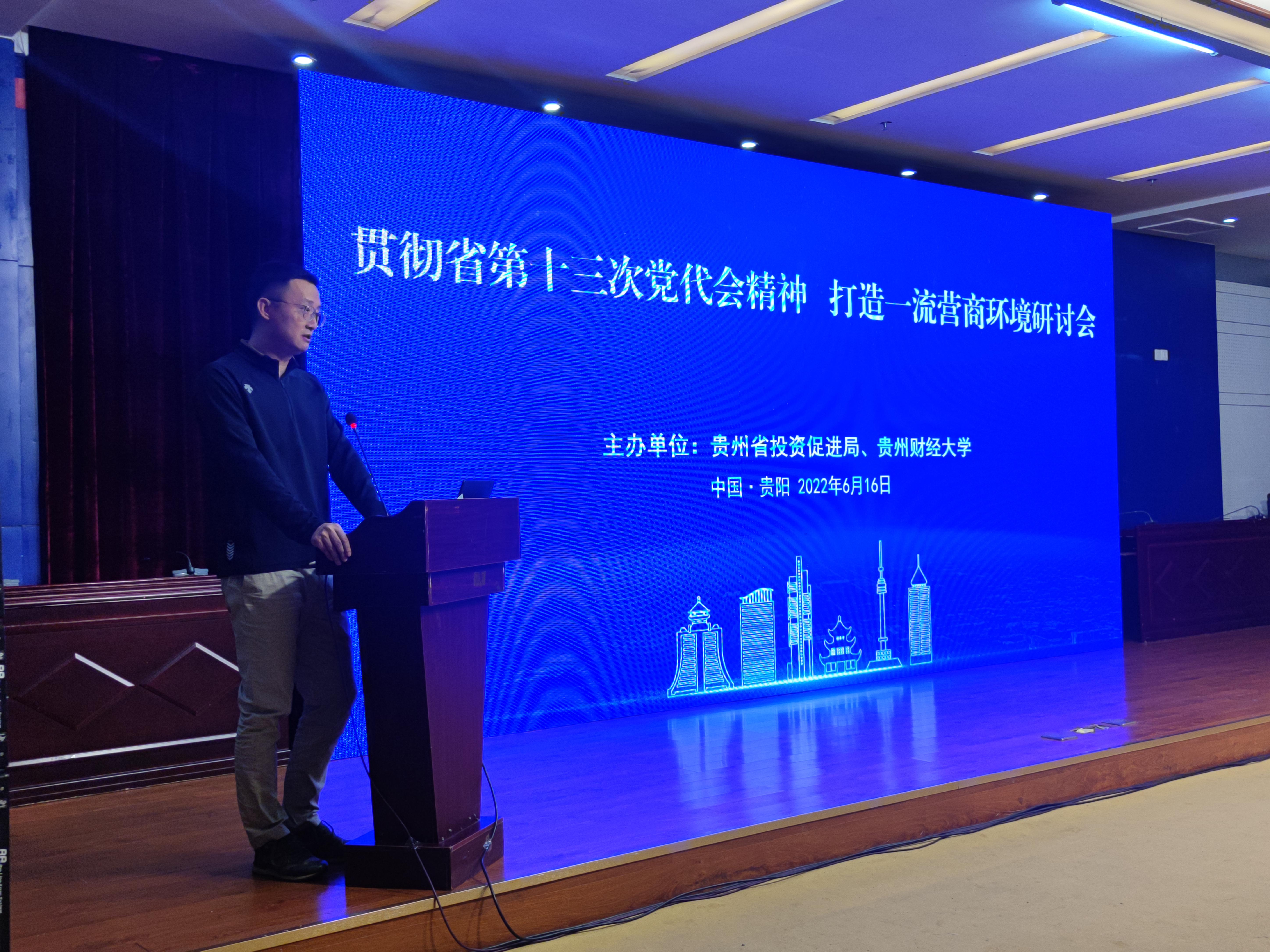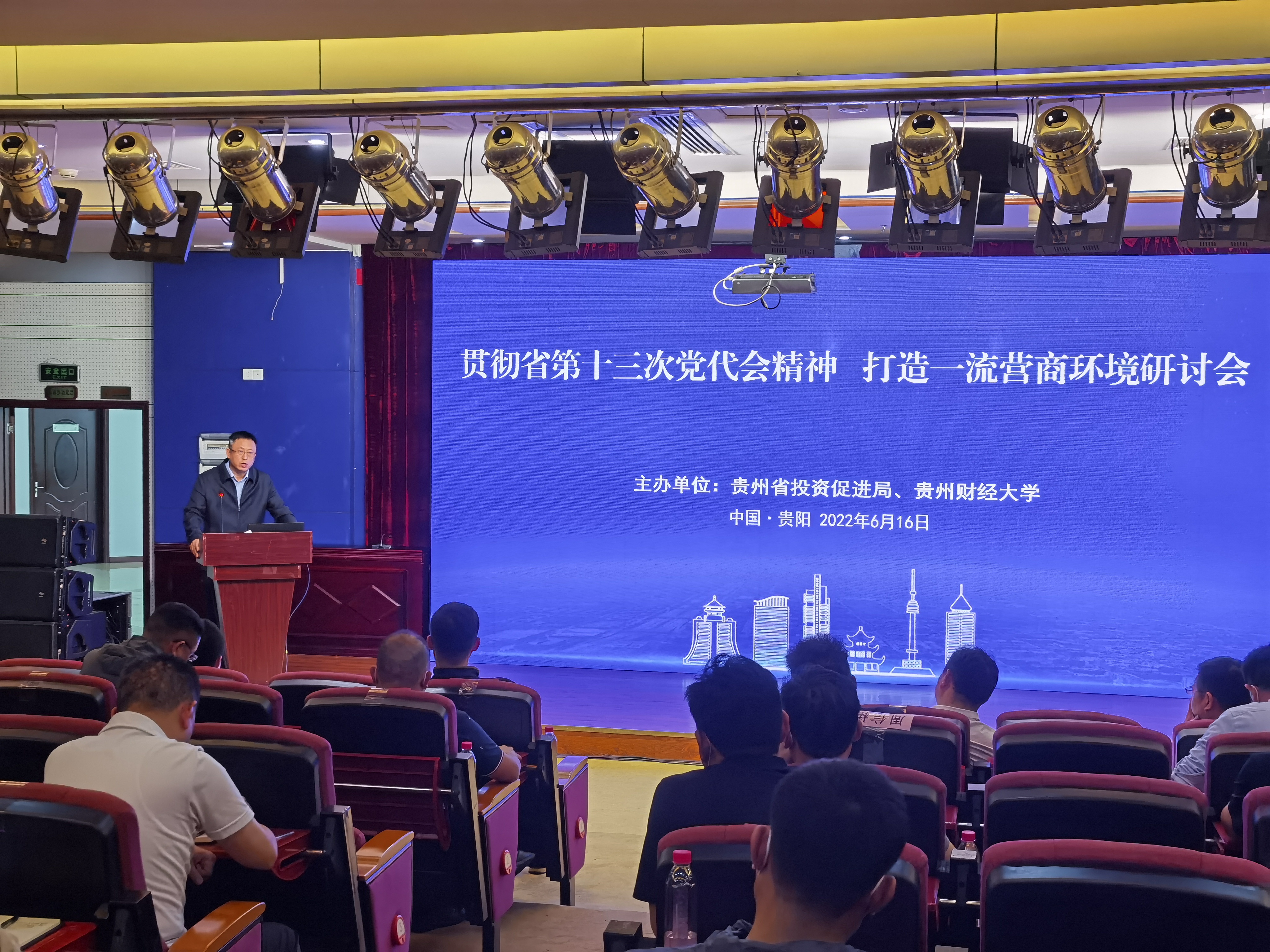 为深入贯彻落实省第十三次党代会精神,打造一流的营商环境,助推我省经济高质量发展,6月16日晚,贵州省投资促进局与百合小说 在营商环境专题研讨班期间,共同举办“贯彻省第十三次党代会精神 打造一流营商环境”研讨会。贵州省投资促进局党组成员、副局长付应刚,百合小说 党委副书记朱克乾出席了此次研讨会。参与本次研讨会的还有来自省直部门、市(州)、县(市、区)营商环境主管部门的相关同志。研讨会开幕式由百合小说 院长曾宇航主持。