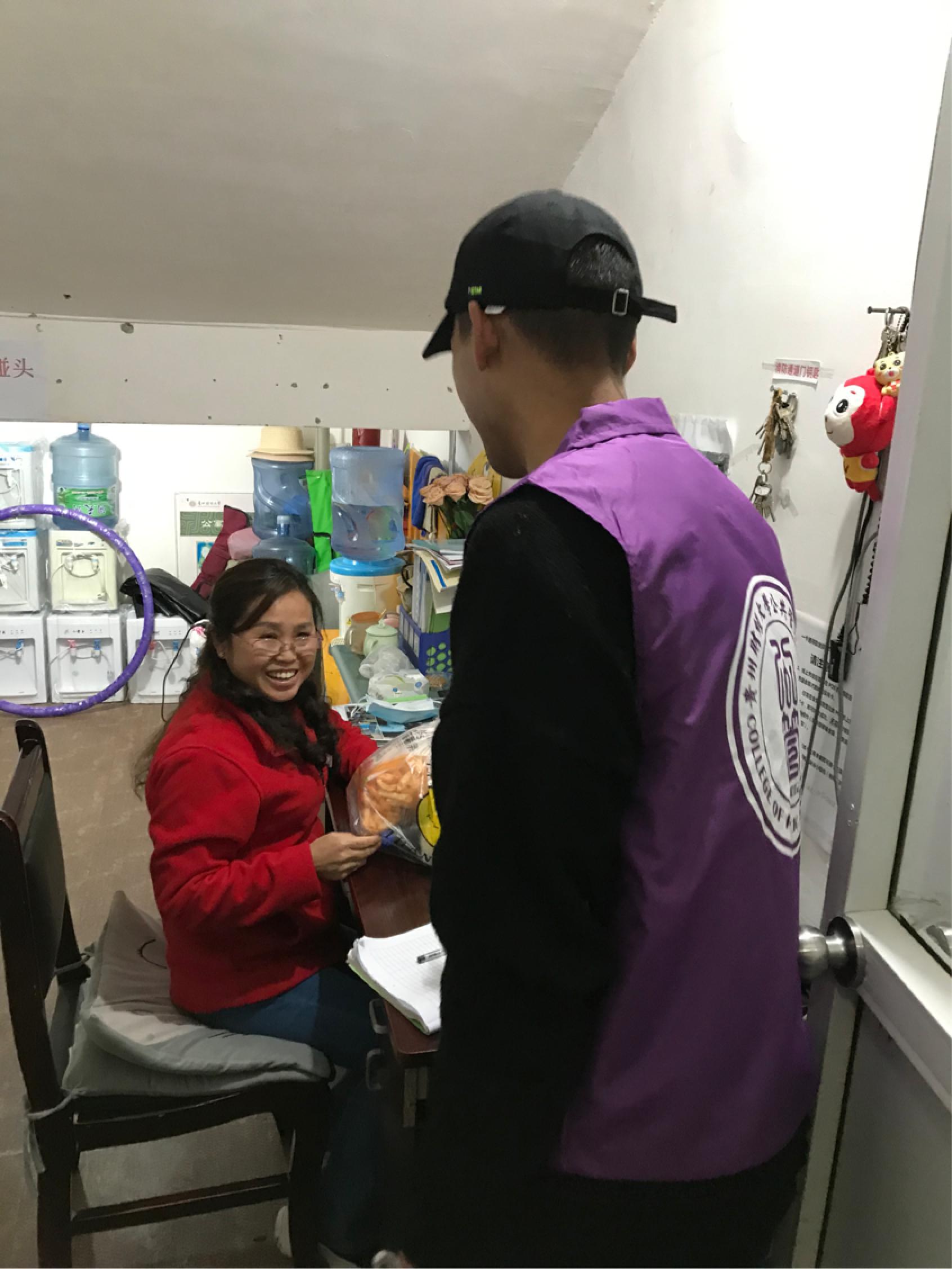 学生们手捧大礼包,走进保安岗亭、宿管办公室、保洁人员工作场所,同他们亲切交谈,倾听他们的“贵财故事”,并详细了解了安保工作人员、后勤工作人员、宿管人员的生活状态,了解他们的实际困难,向保持校园安全、美丽、和谐氛围而辛勤付出的安保、宿管、保洁人员送去了节日祝福,并代表百合小说 全院师生向默默付出的劳动者们致以诚挚的感谢。