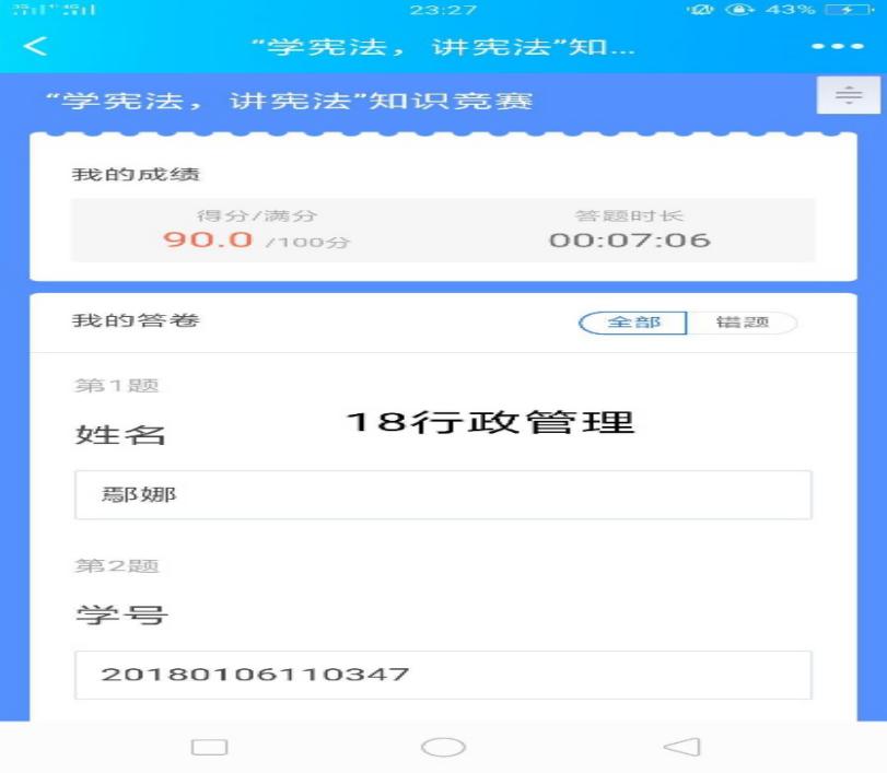 通过这次的宪法法律知识答题活动,大学生们对宪法知识有了进一步的了解,法制意识得到增强,有利于构建和谐平安校园,推进法制社会建设,更是为在2035年基本实现“法制国家,法治政府,法制社会基本建成”的社会主义现代化目标作出了贡献。
