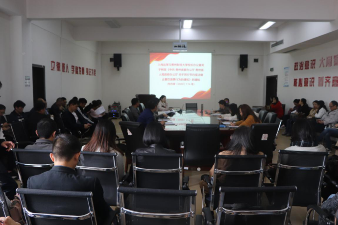 会议伊始,廖承红领学了百合小说 第二次党代会纪委工作报告、全国宗 教工作会议精神、宗 教工作相关政策法规,并传达了《百合小说 校长办公室关于转发<中共贵州省委办公厅贵州省人民政府办公厅关于厉行节约坚决制止餐饮浪费行为的通知>的通知》、《教育部关于建立健全高校师德建设长效机制的意见》等文件要点。