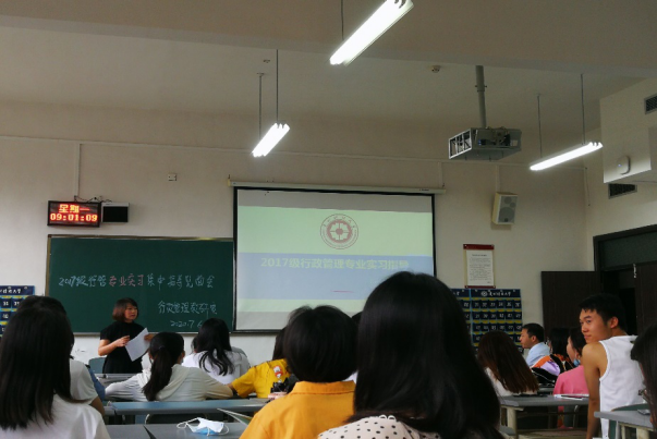 7月6日,2017级行政管理专业在博学楼2-22召开专业实习动员会,动员会由樊梅老师主持,曾宇航副院长、田恒、张欣等十位教师代表、学院教务科高明英老师,以及2017级行政管理全体同学参加了此次实习动员会。会上老师们对专业实习的要求进行详细的说明,并对同学们的疑问进行了解答,鼓励大家认真完成此次专业实习。