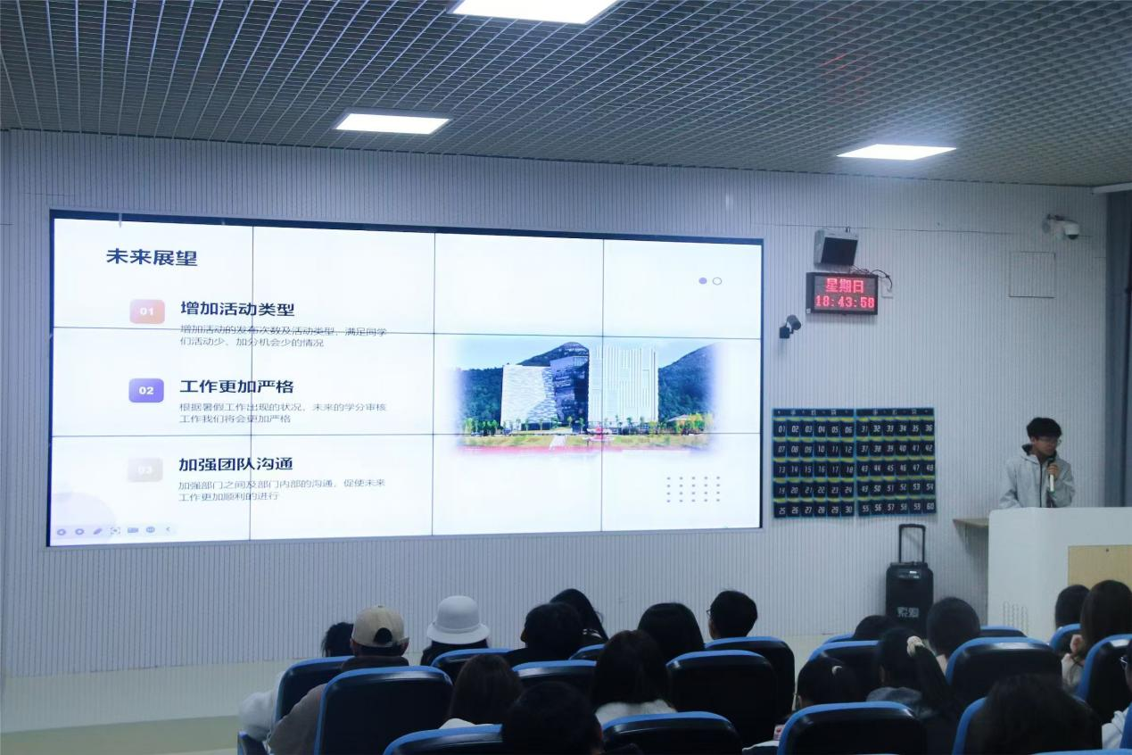 随后,学生会及融媒体中心各部长相继发言,回望过去一年的付出与成长,分享各部门的工作成果及心得,找寻不足与探讨未知,为未来的发展提供了宝贵的经验与借鉴。同时也提出对未来的展望,在学院发展的宏伟蓝图上,以部门之力绘出更绚丽的色彩,为实现共同目标全力以赴,续写荣耀篇章,向着更高峰攀登不止。