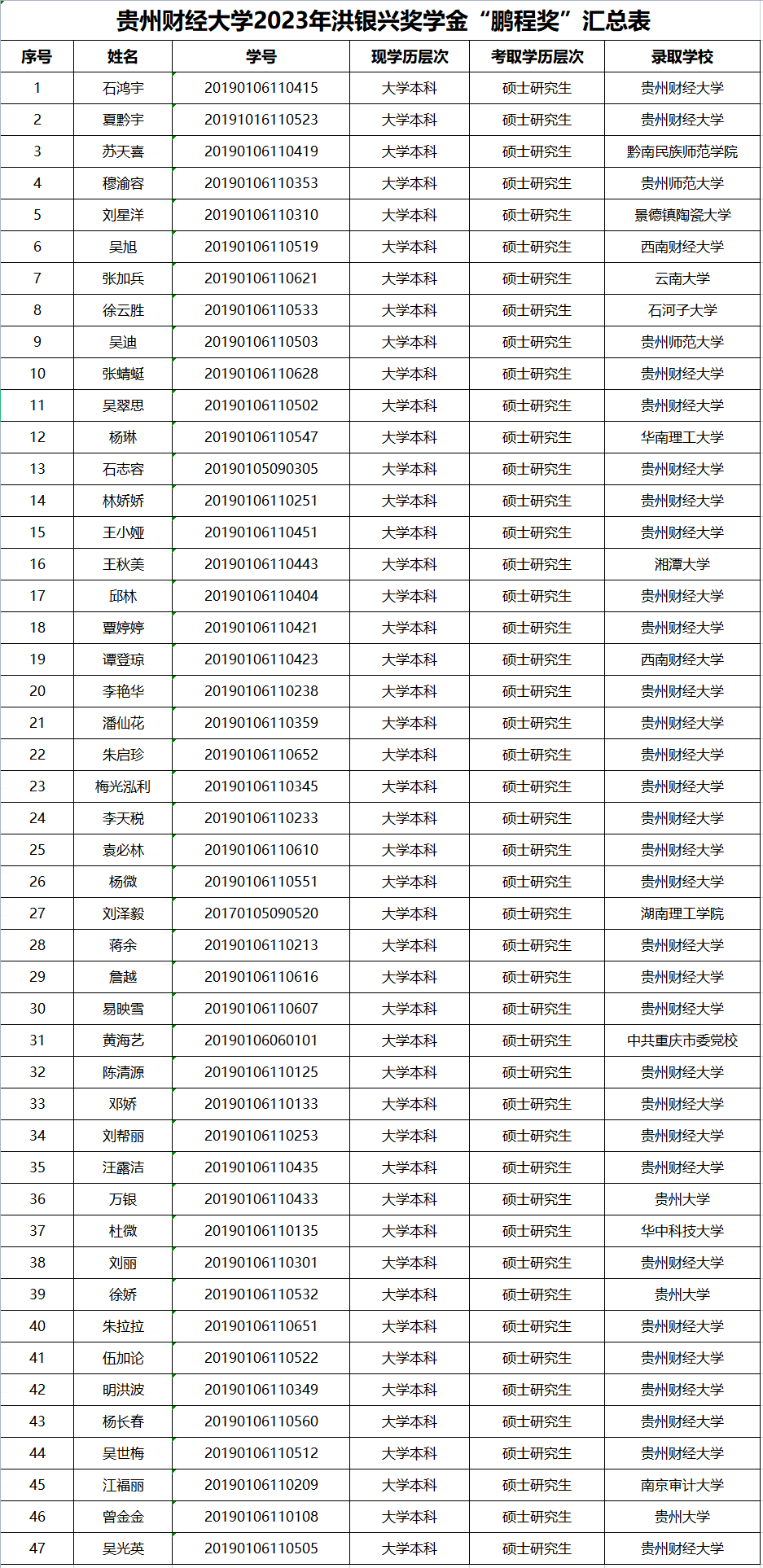 2023年洪银兴奖学金“鹏程奖”参评名单公示