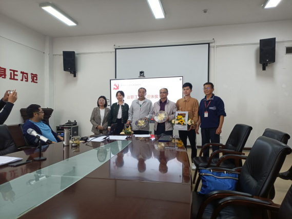 学习开始之前,学院为胡健和许洋两位即将退休的老师举行了温馨的光荣退休仪式,王飞跃院长和廖承红书记充分肯定和赞扬了两位老师为教育事业和学院发展做出的贡献,对两位老师的退休生活提出了美好祝福,并欢迎他们继续为学院的发展发光发热,做出贡献。