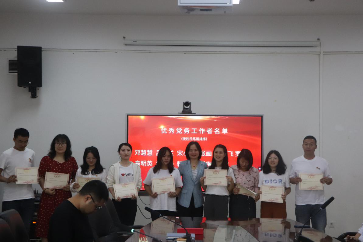 学习结束后,随即进行了“七一”表彰大会。会上,冯应斌、曾宇航、廖承红分别为获得“服务之星”、优秀共产党员、优秀党务工作者荣誉称号39名师生颁发了表彰证书。