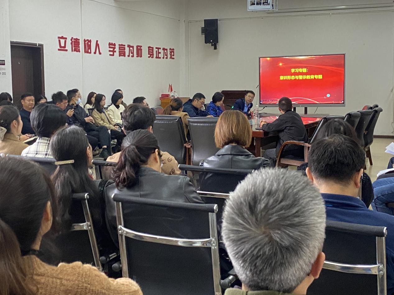 本网讯:(李丹青 图文报道)11月5日下午,学院在正德楼201会议室召开了2024年度第十四次政治理论学习,本次学习专题为意识形态与警示教育,会议由学院党委书记廖承红主持,全体教职工参加。