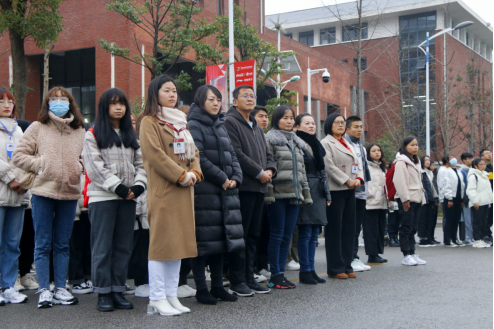 为深入贯彻落实“不忘初心、牢记使命”主题教育会议精神,激发全校师生的爱国之情、报国之志,应学校要求,百合小说 于12月1日在正德楼前院士墙组织开展“我和祖国共成长”爱国主义教育升旗仪式活动。百合小说 党委书记廖承红、院长王飞跃、校团委副书记贾秋玲、党委副书记刘晓娟、团委副书记、学生科副科长王睿、2020级辅导员蒋光艳及2020级全体新生共同参与此次活动。