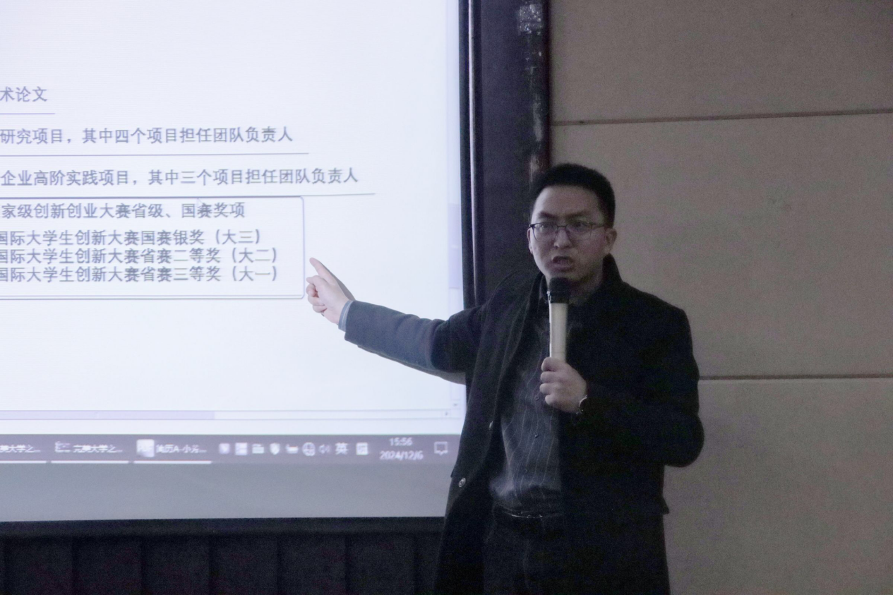随后,赵卓结合自身指导往届创新创业大赛的经历,采取思维导图分析、案例式教学等教学方法,全面剖析了各类创新创业大赛的背景、目标、规则变化和评审标准。此外,他还分享了指导学生的成功经验,包括项目选育、路演技巧、团队协作等方面的实用技巧,深入浅出地为即将参加各类创新创业大赛的学生提供了专业的指导和支持,帮助他们在比赛中取得优异成绩。