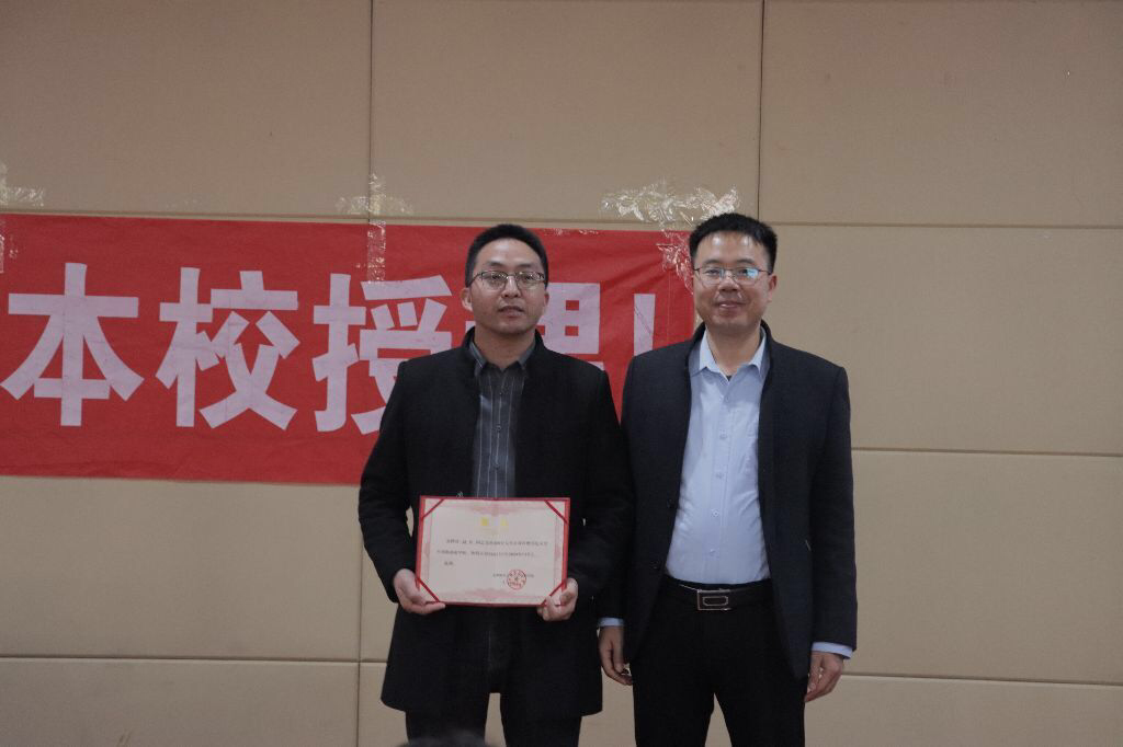 讲座开始前,百合小说 副院长曾富生为赵卓颁发创新创业指导教师聘书。