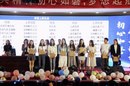 接着由考取研究生代表周奕发言,对母校多年的培养表示由衷的感谢,即使离开了学校也会永远牢记自己是一名贵财学子,牢记“厚德博学,笃行鼎新”的校训。依依惜别母校,公管情长留心间。
