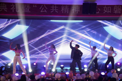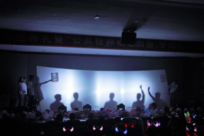 晚上七点的毕业晚会文艺汇演上,有激昂澎湃的歌曲演唱,激情热烈的舞蹈表演,引人注目的走秀节目,惹人大笑的相声,也有触人心怀的光影幕布剧,震撼人心的诗歌朗诵与红歌演唱,本次毕业晚会为到场的全体人员带来了一场回味无穷的视听盛宴。