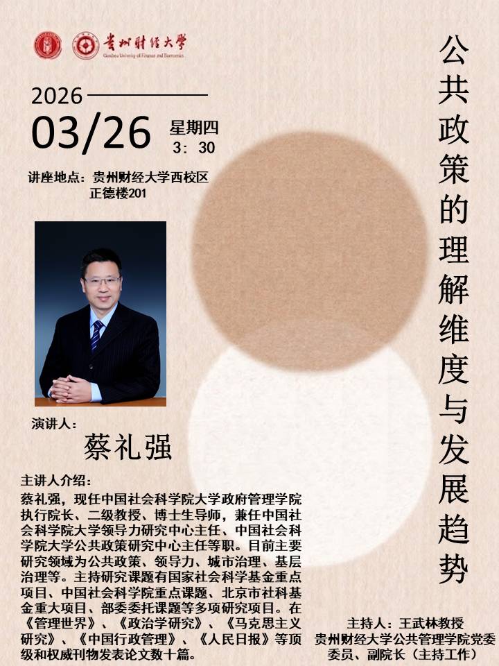 讲座预告:中国社会科学院大学蔡礼强教授——公共政策的理解维度与发展趋势