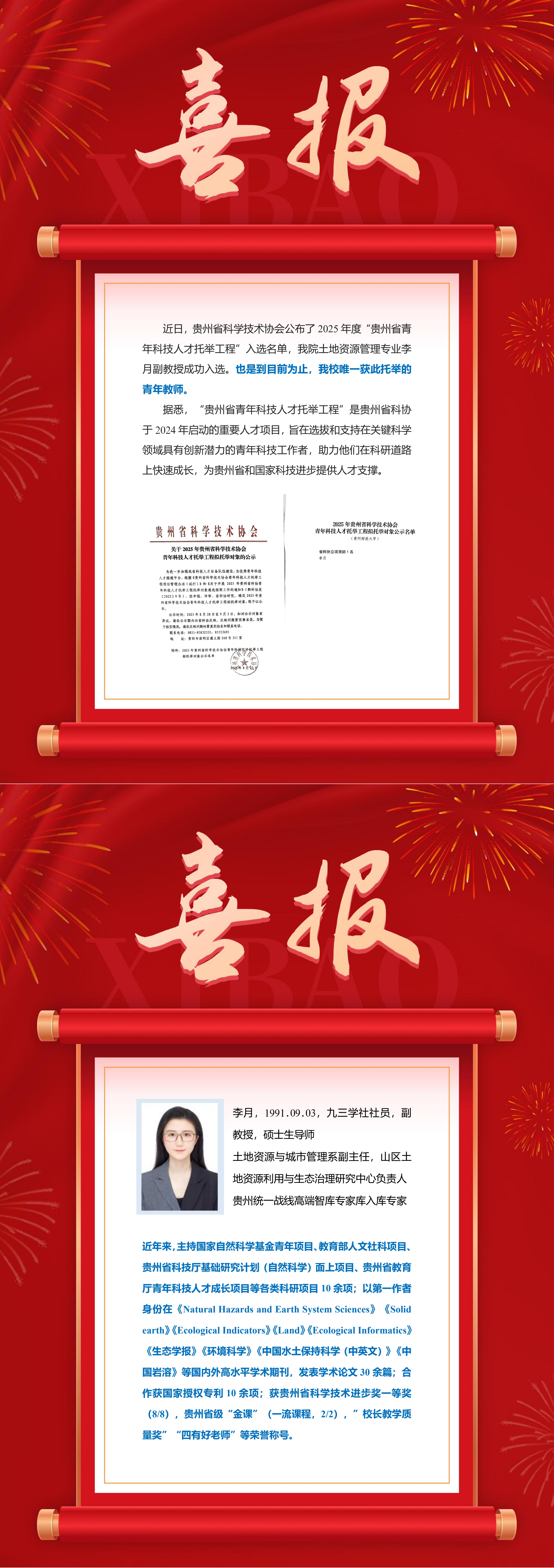 喜讯:李月副教授入选贵州省科协青年科技人才托举工程